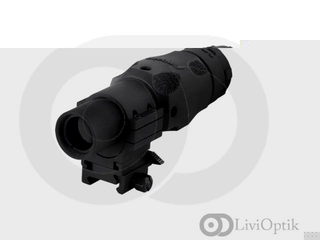 The 6XMag-1 magnifier is optimized for use with the Aimpoint Micro T-2/H-2, CompM5 Series red dot sights. Internal optical adjustments make aligning the magnifier and sight quick and easy. Aimpoint magnifiers utilize the red dot in Aimpoint sights as the aiming reticle, eliminating the need for re-zeroing when shifting between non-magnified and magnified aiming. The 3-degree field of view (FOV) allows for a generous sight picture. A variable (-3 to +3) dioptric setting allows the magnifier to be adapted to the individual’s eye. The 6XMag-1 can also be used as a handheld monocular and the protective rubber cover provides the ideal ergonomic grip.