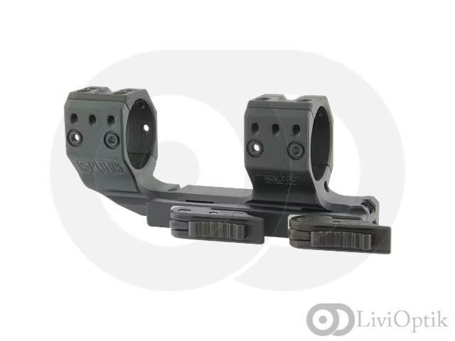Quick detachable cantilever mount featuring side clamp and dual levers on the left side of the mount, with tensioning screws on opposite side of the mount body. Absolute co-witness most clip-on NV units on AR platforms. Allows the scope to be mounted 40 mm/1.57” farther forward than with a non-cantilever mount.